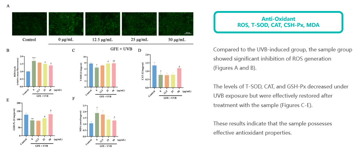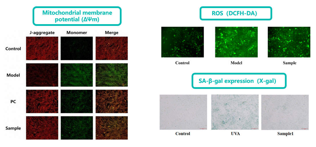 Cell-aging Model | UVB-induced photoaging model in epidermal stem cells | Measurement of ROS content, staining ofβ-galactosidase, mitochondrial membrane potential and stemness (integrinα6 and integrin β1) expression |