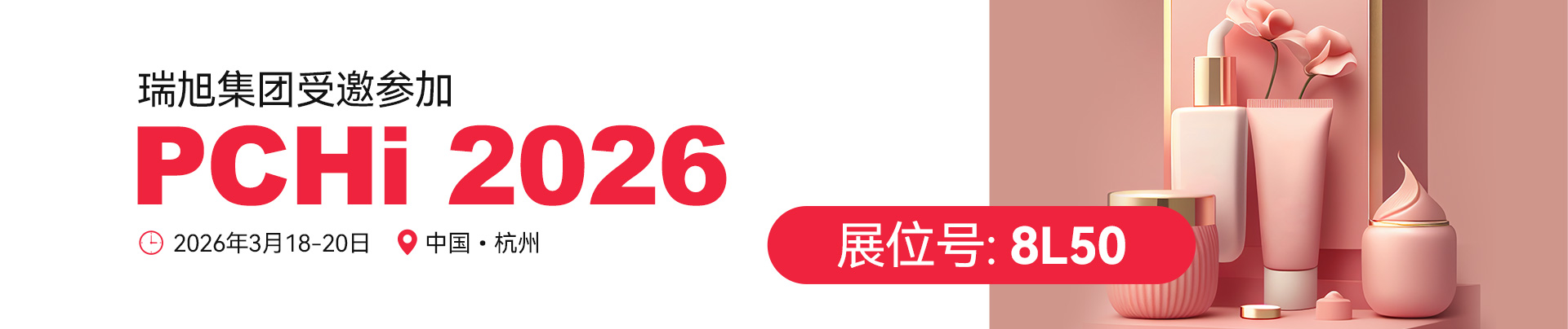 2026年3.18-20日,瑞旭集團(tuán)受邀參加在杭州舉辦的PCHi化妝品展會(huì),并設(shè)展(展位號(hào)8L50)。